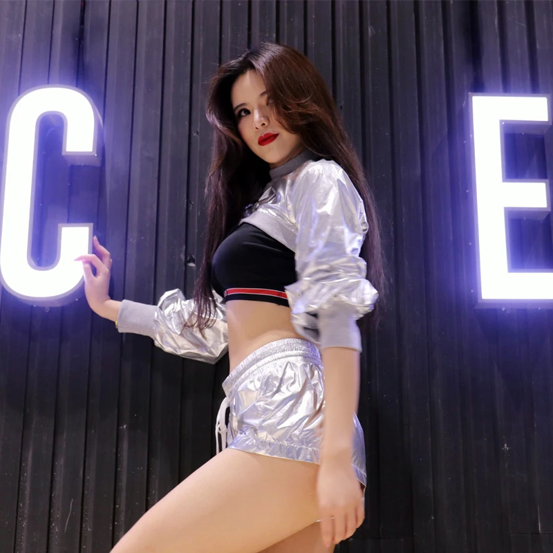 Hip Hop Ds Costumes New Jazz Girls Cheerleading Clothing Street Dance Silver Top Shorts Sexy Suit M