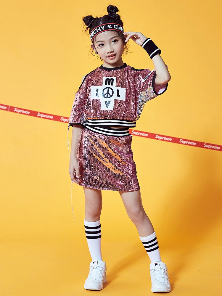 Children's jazz dance costumes girls sequins modern cheerleading clothes dance set hip hop street d